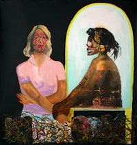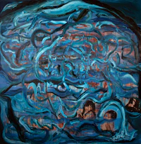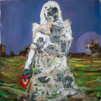 pig's blood, matte medium, photo transfer, oil paint on canvas